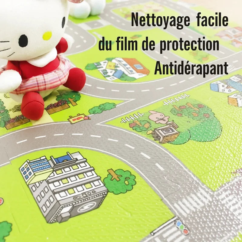 Tapis puzzle en mousse routes et villes colorées